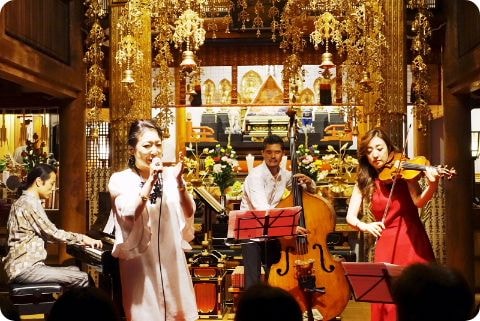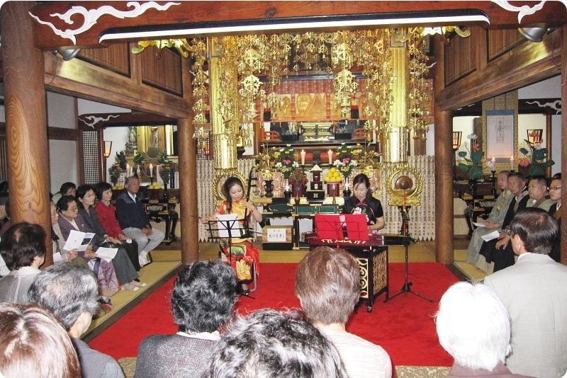 月を愛でると共に、宗教から発生したと言われる音楽やいけばなに親しむといった心豊かなひとときを、み仏に見守れながら心のオアシス本行寺でお過ごしいただいています。