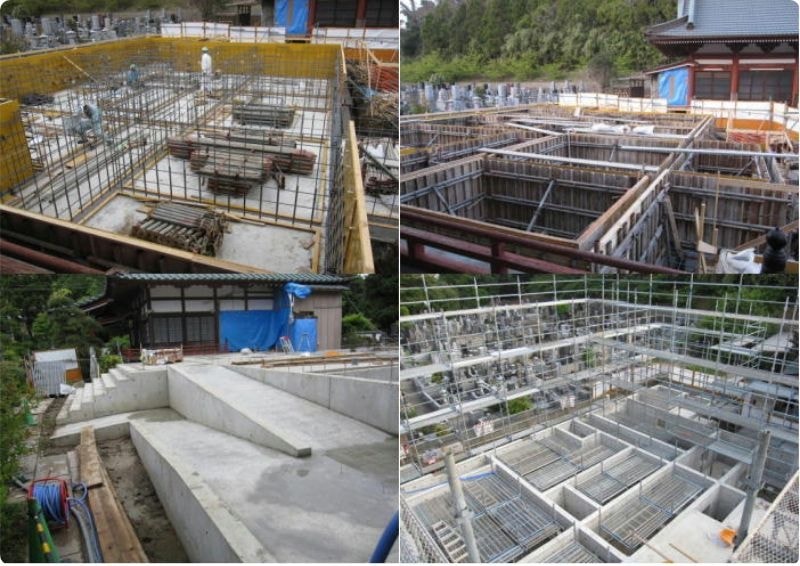 住職に就任して先ず1番気になっていた境内墓地通路の舗装工事に着手しました。勾配をとるのが難しい平坦地でしたが、市原総代の測量工事寄付もあり通路が整備できました。次に境内庭園と御影石参道の整備、そして白壁瓦塀の新築、車庫及び門前駐車場の舗装工事、永代供養墓「久遠廟」の新設など、続けざまに多くの整備をさせて頂きました。白壁瓦塀は型枠を組んでコンクリート流し込む工法の、丈夫で意匠もこだわったものです。中でも境内庭園の整備には、毎年手を入れながら4年の歳月を要しました。